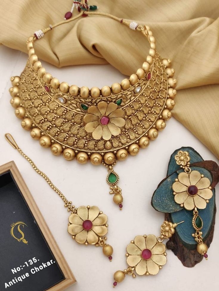 Elegant Design: Featuring floral and paisley motifs often seen in royal Indian bridal jewelry. The necklace hugs the collarbone gracefully while the matching earrings dangle beautifully, complementing every face shape.